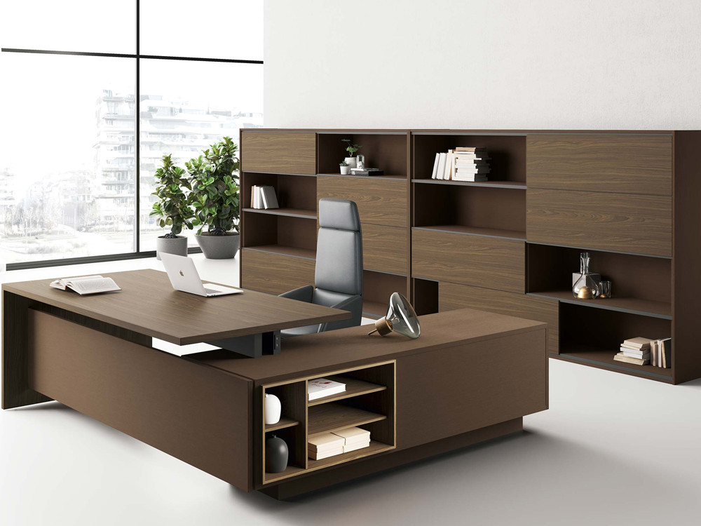 Studiate per il lavoro ma anche per la rappresentanza dell’immagine aziendale, le scrivanie direzionali uniscono ampiezza di dimensioni, finiture pregiate dei materiali e un’estetica ben definita.